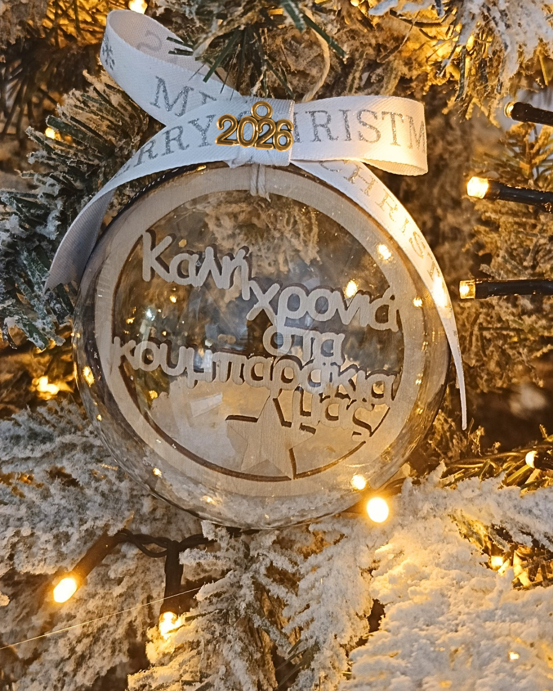 Χριστουγεννιάτικη μπάλα, ένα ξεχωριστό δώρο για να δείξετε την εκτίμησή σας στους κουμπάρους σας. Ένα όμορφο στολίδι για το δέντρο τους.