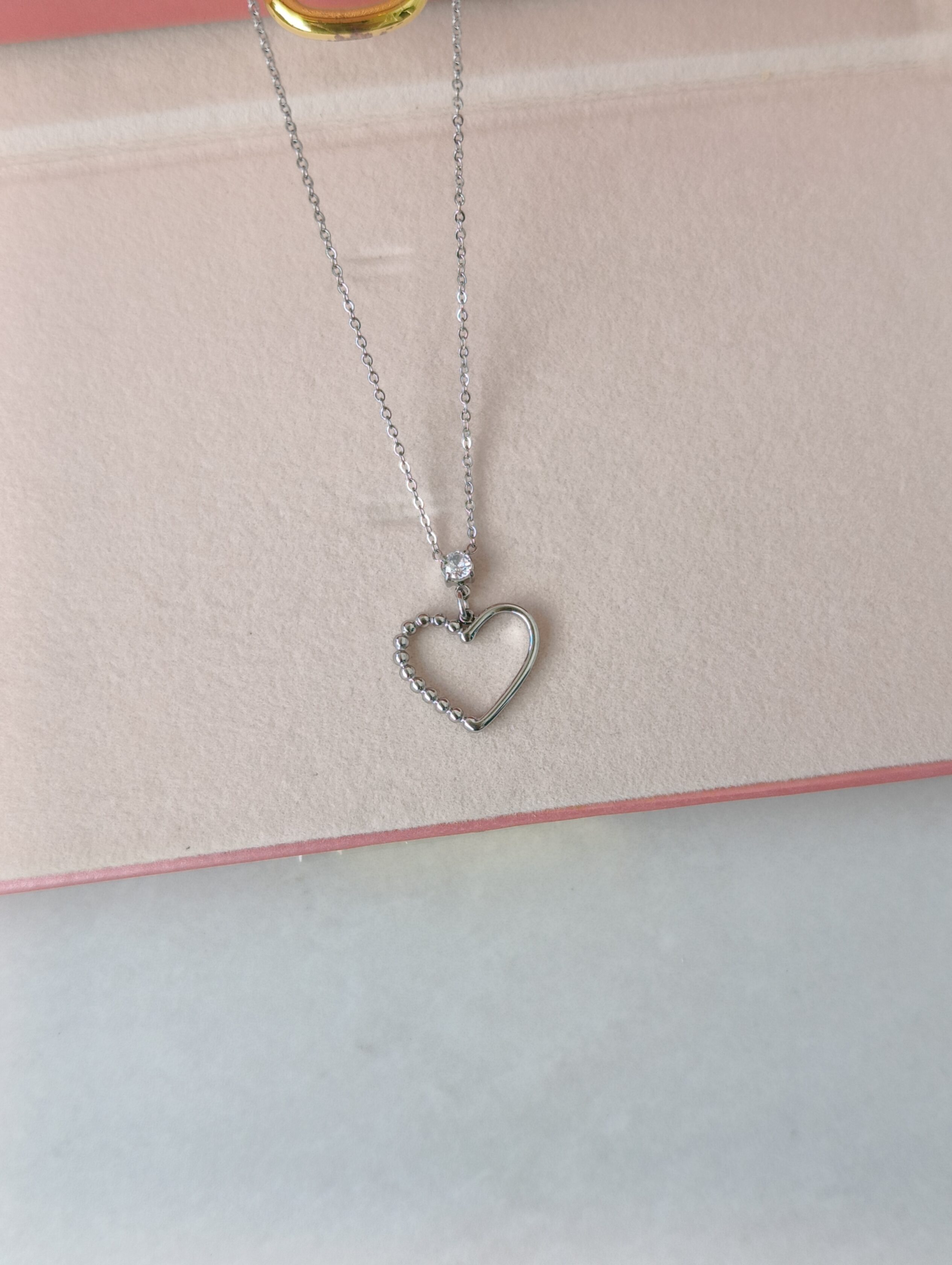 Το Heart Glow είναι ένα κομψό κολιέ από ασημί ανοξείδωτο ατσάλι με διακριτική καρδιά διακοσμημένη με στρας. Ιδανικό για καθημερινή χρήση αλλά και πιο ιδιαίτερες εμφανίσεις, χαρίζει λάμψη και θηλυκότητα στο λαιμό. Το υλικό του είναι υποαλλεργικό και ανθεκτικό στο νερό, προσφέροντας αντοχή στον χρόνο χωρίς να μαυρίζει. Ιδανικό και ως δώρο για κάποιο αγαπημένο πρόσωπο.
