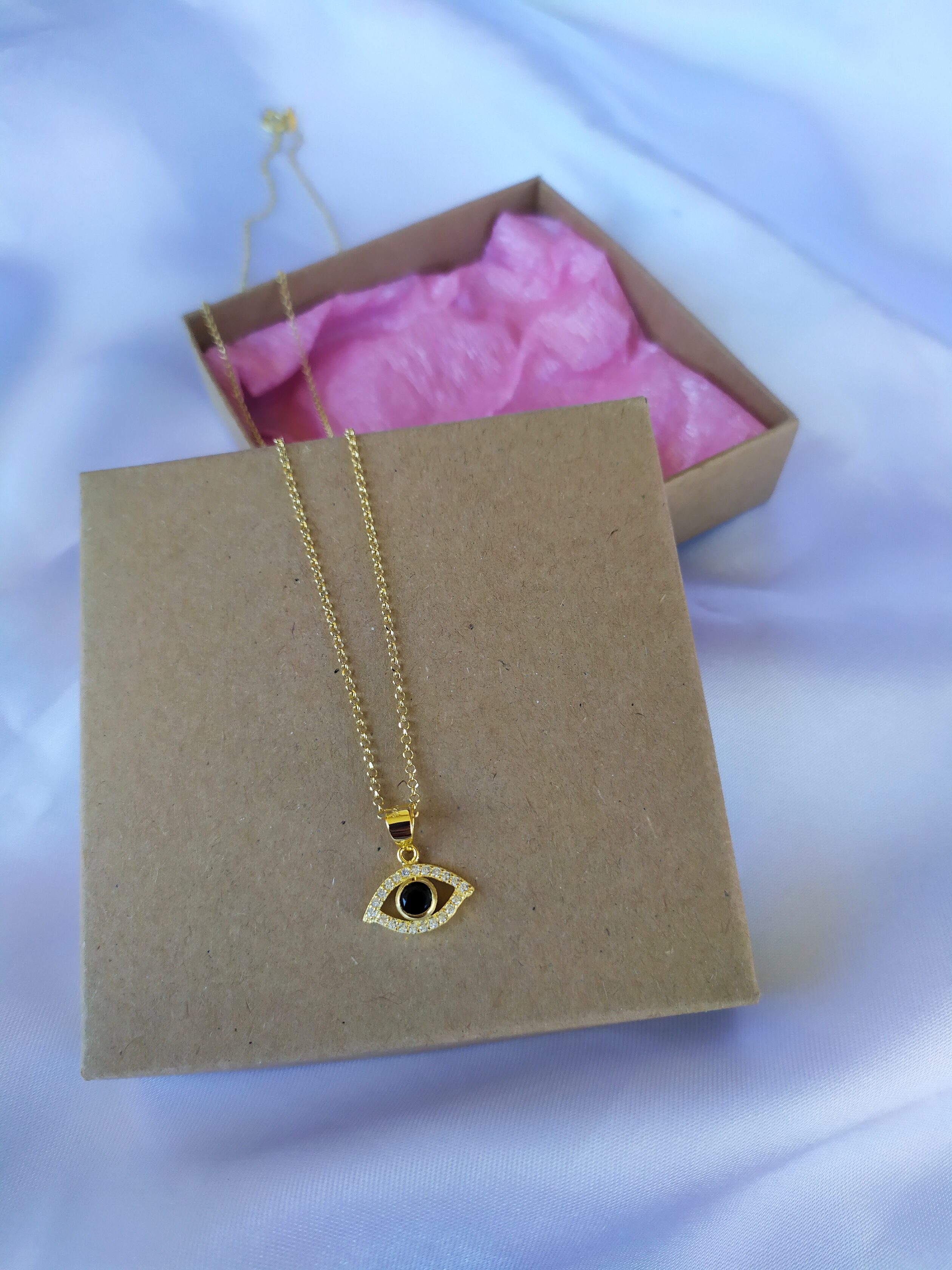 Κολιέ με ματάκι επιχρυσωμένο ασήμι 925,η αλυσίδα είναι 45 εκ. επίσης από επιχρυσωμένο ασήμι 925. Διακριτικό για να το φοράτε από το πρωί μέχρι το βράδυ!
