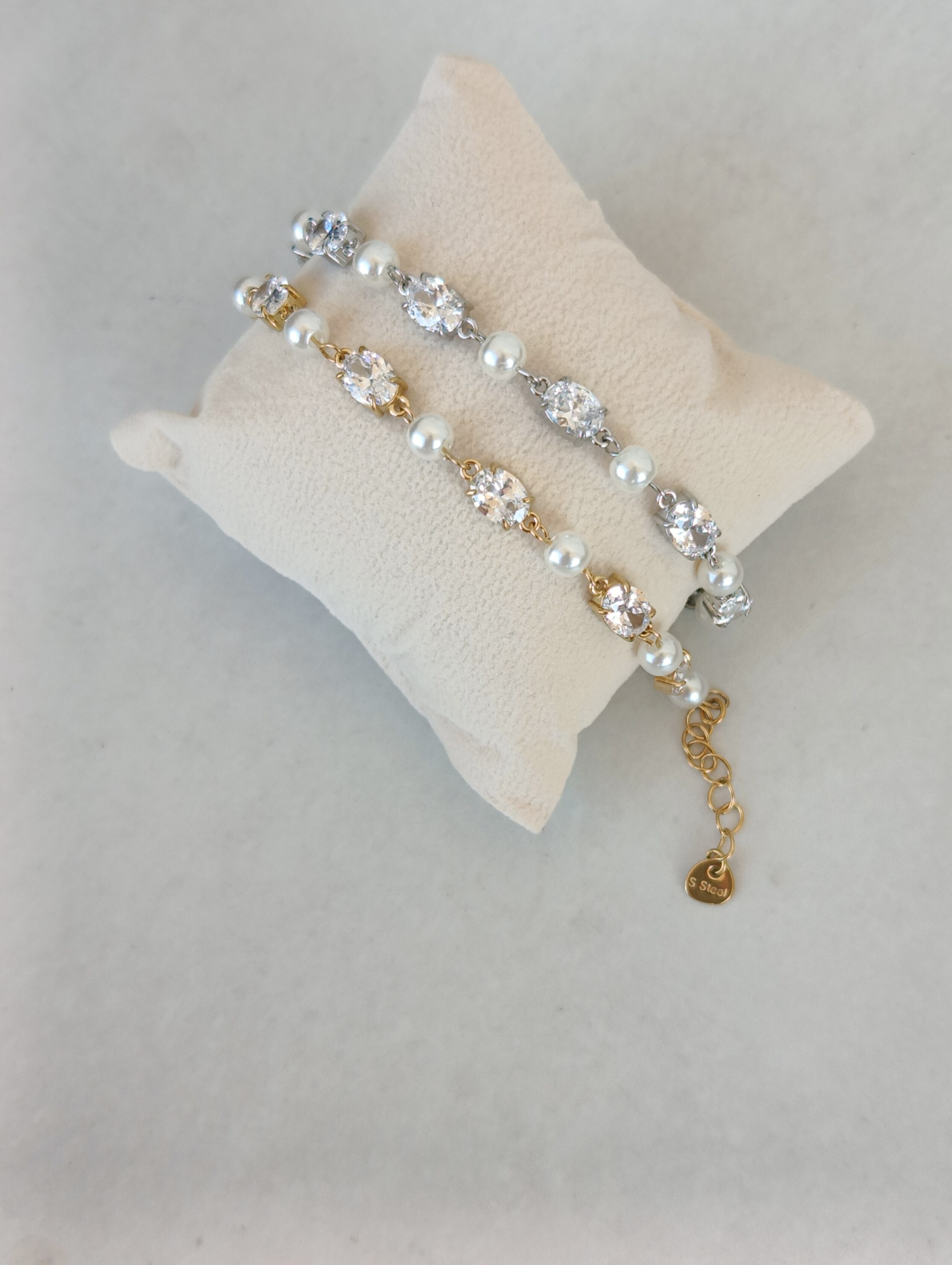 Βραχιόλι με ζιργκόν και πέρλες – stainless steel