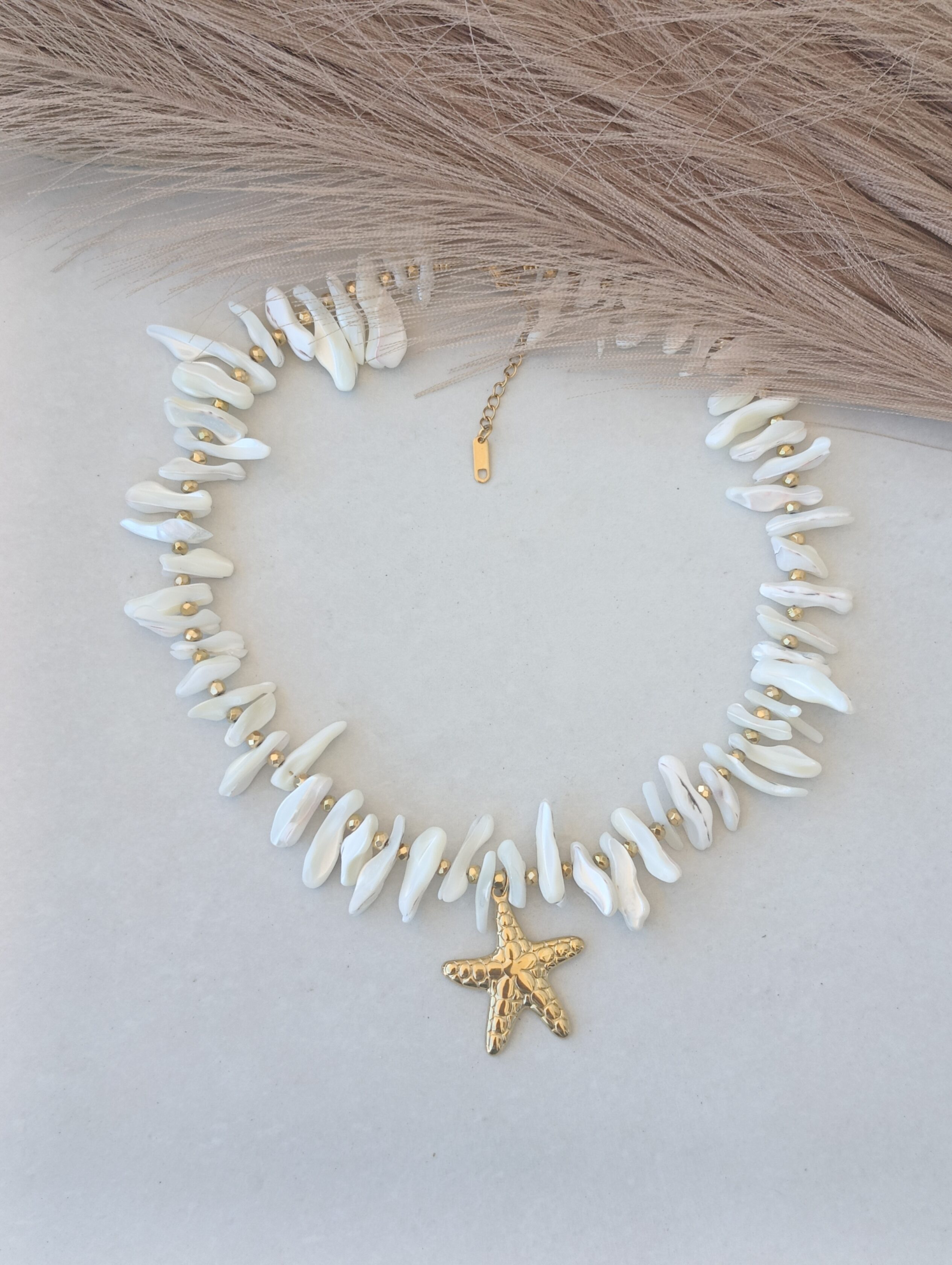 Το White Coral Star είναι ένα κομψό και καλοκαιρινό χειροποίητο κολιέ, με φυσικό λευκό κοράλλι, χρυσές χάντρες από αιματίτη και έναν ατσάλινο αστερία σε χρυσό τόνο. Ιδανικό για layering με άλλα κολιέ ή ως μοναδική πινελιά σε ένα λευκό ή nude outfit. Υποαλλεργικό, ανθεκτικό στο νερό και απόλυτα λαμπερό!